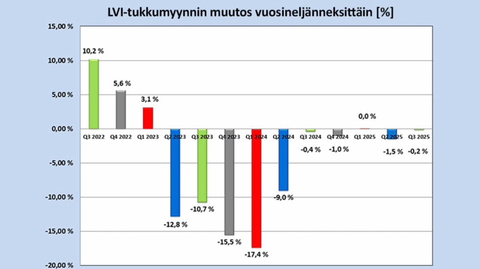 Kolmaskaan kvartaali ei tuonut käännettä LVI-tukkutilastoihin
