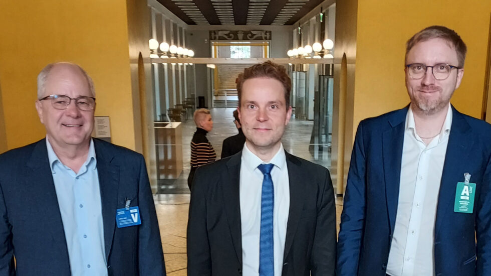 Talotekniikkaliiton varatoimitusjohtaja, LVI-TU:n toimitusjohtaja Mika Hokkanen ja Talotekniikkaliiton yhteiskuntasuhdepäällikkö Simon Elo tapasivat eduskunnassa 15.10.2025 kansanedustaja Petri Honkosen (kesk). Petri Honkonen toimii eduskunnassa perustuslakivaliokunnassa ja hallintovaliokunnassa sekä johtaa keskustan asuntopoliittista työryhmää.